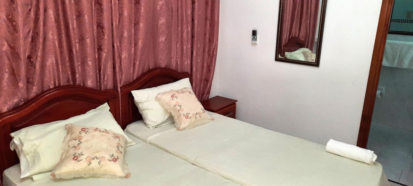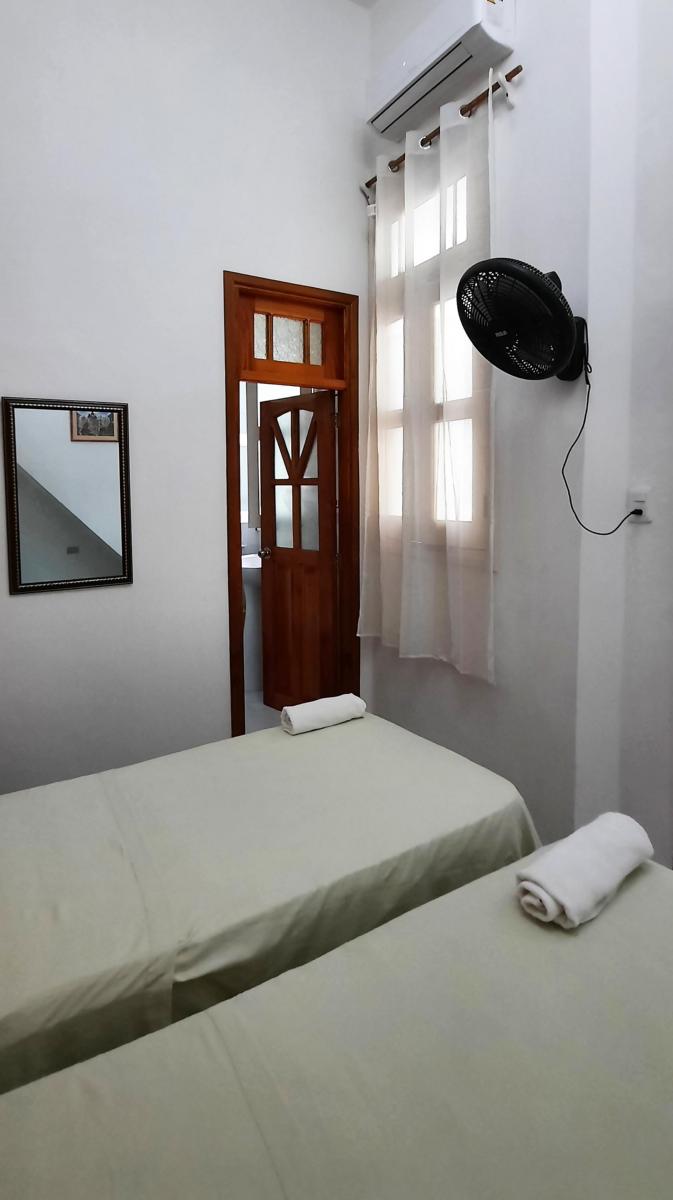 Room for two people, with single beds. It has a private bathroom and air conditioning. Equipped with A/C, fan, 120V electrical current, hair dryer and refrigerator.